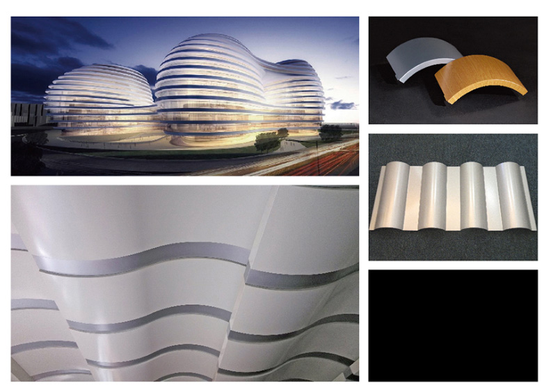 優(yōu)質(zhì)鋁合金強(qiáng)度高,且由于開口處采用焊接工藝,大大提高了鋁板的鋼度,確保了幕墻的抗風(fēng)、防震、防雨水滲漏、防空氣滲 透、防雷、抗沖擊效果。鋁單板可加工成不同規(guī)格的平板、雙曲面板、異形板等各種復(fù)雜形狀,鈑金成形后, 經(jīng)過表面處理,可進(jìn)行氟碳噴涂、丙稀酸噴涂及粉末噴涂,色彩可任意選定,廣泛用于室內(nèi)外裝飾。